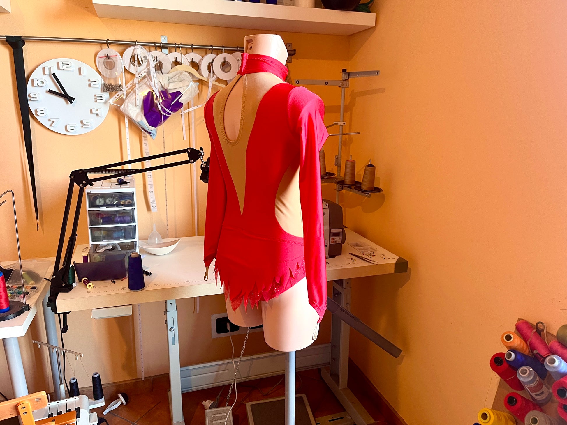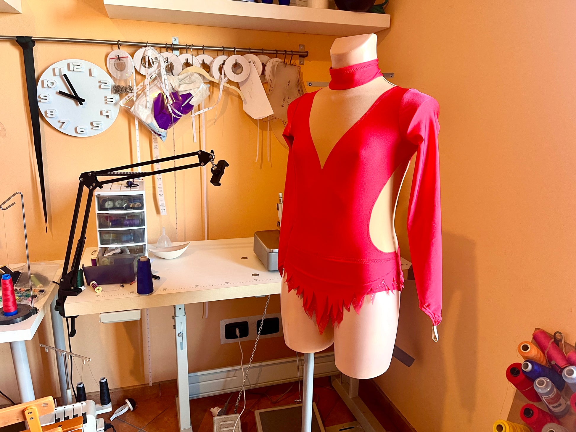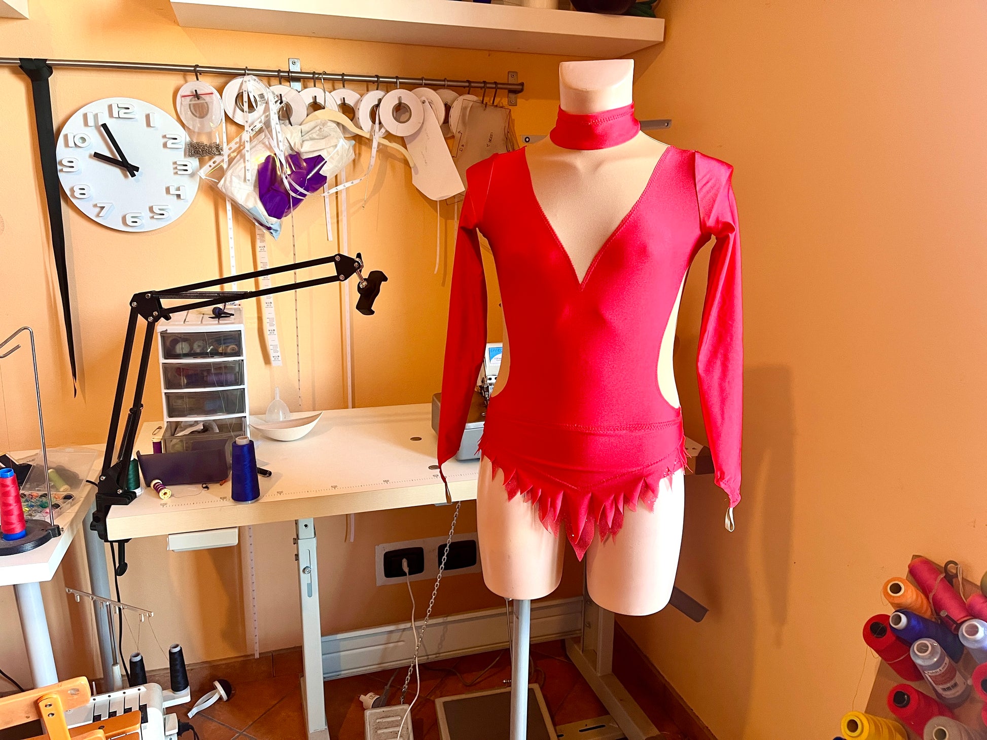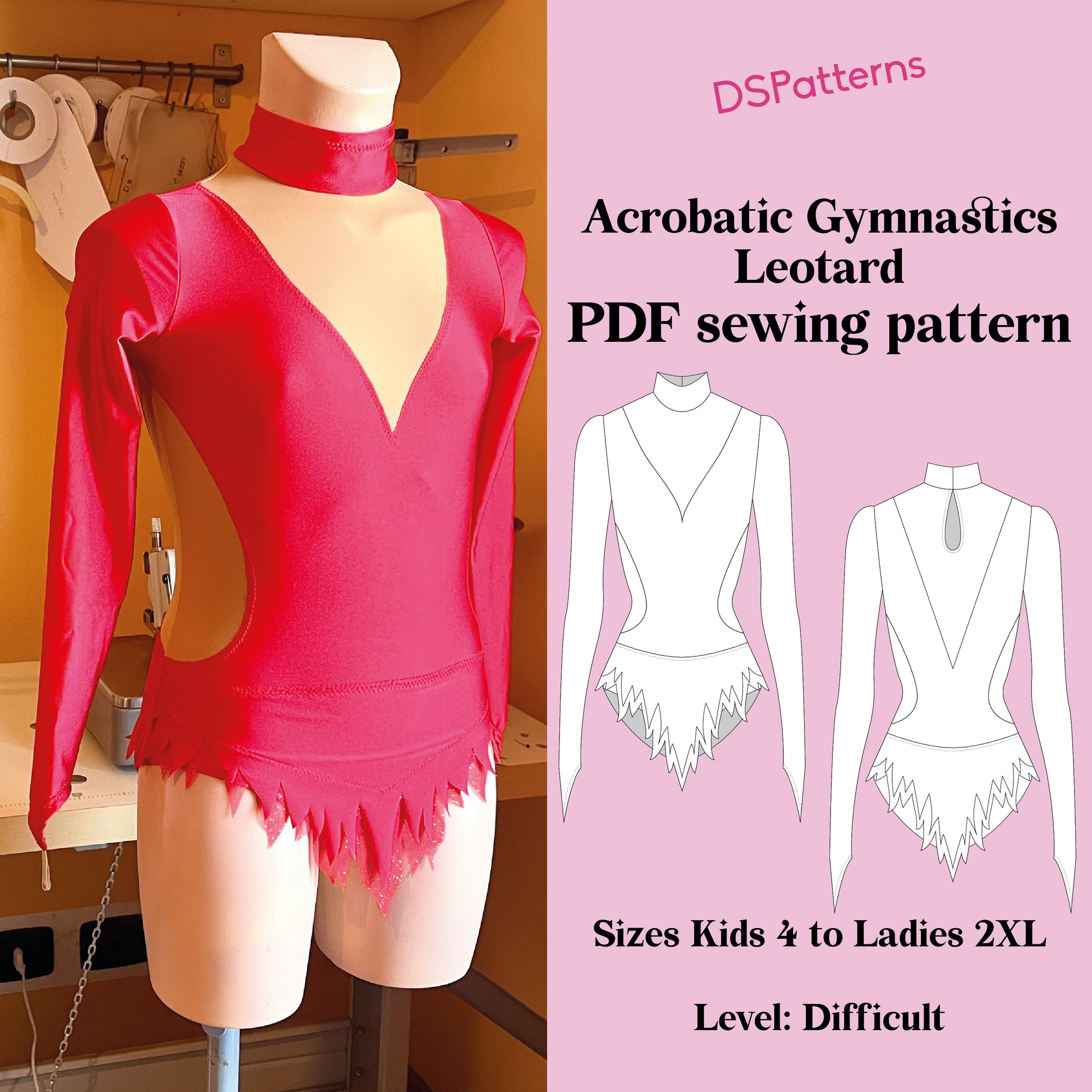 Modello di cucito per body da ginnastica acrobatica | Gonna con collo alto, maniche lunghe e orlo frastagliato | Download immediato