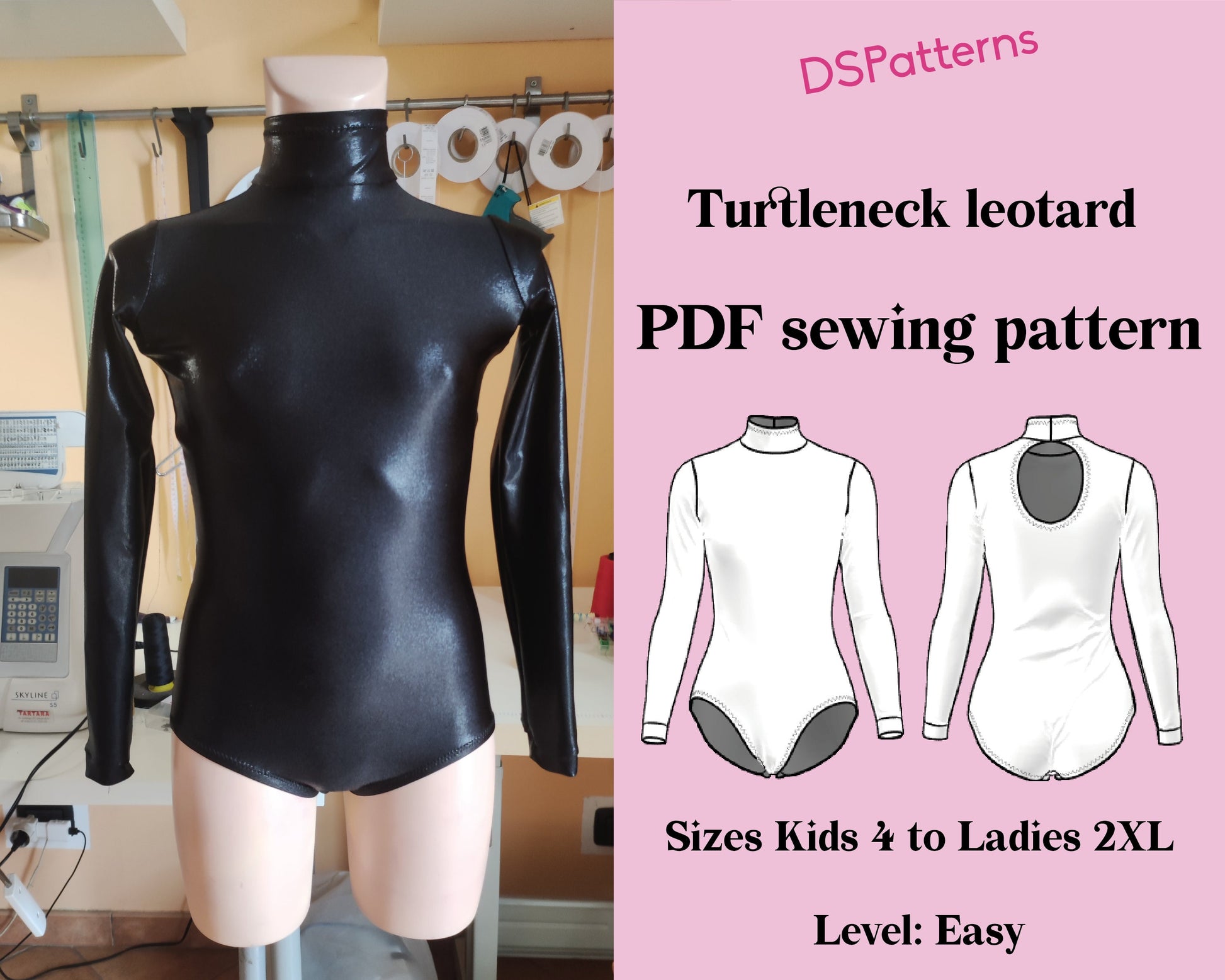 Modello di cucito per body da danza – Body a collo alto con maniche lunghe
